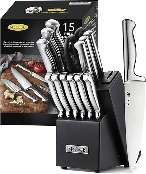 Amazon Com Cuisinart C77ss15pg 15pk 15 Piece Stainless Steel Hollow Handle Block Set Electronics - Includes 8 chef knife, 8 slicing knife, 5.5 serrated utility knife, 3.5 paring knife, 3.5 bird's beak paring knife, 8 sharpening steel, household shears, and wood knife block.