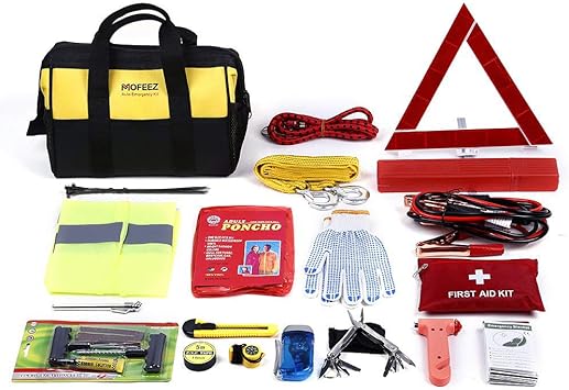 Amazon Com Mofeez Portable Roadside Assistance Auto Emergency Kit First Aid Kit Rugged Tool Bag Contains Jumper Cables Tools Reflective Safety Triangle And More Automotive - But packing an emergency car kit means more than just throwing a tire iron and a pack of flares into your trunk.